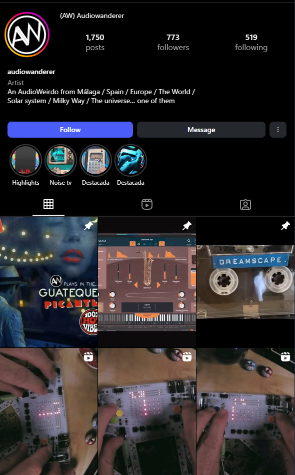 Whether it’s music, sound, or even visuals, Audiowanderer brings professional skill and a deep artistic vision to every project, enriched by years of experience in the underground electronic experimental scene as well as collaborations with prestigious organizations such as Vimeo, European Culture Foundation, RTVE, Zemos98, Urbanbat, and more.